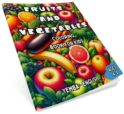 Your child colors fruits and vegetables while learning their Yemba names with English.