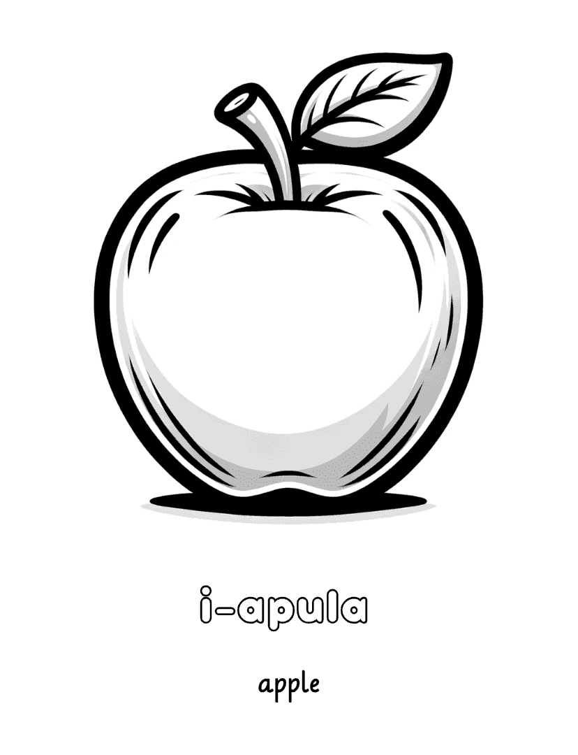 Your child colors healthy foods while learning Zulu words. Each page shows fruits and vegetables with both languages. You can color together and talk about healthy eating. Your child learns food words they hear at home. Perfect for families who cook and eat together.